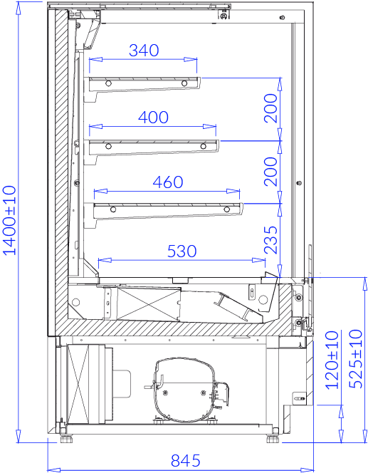 stelaż wewnętrzny z blachy nierdzewnej (nie dotyczy aluminiowego profilu poprzecznego półki)