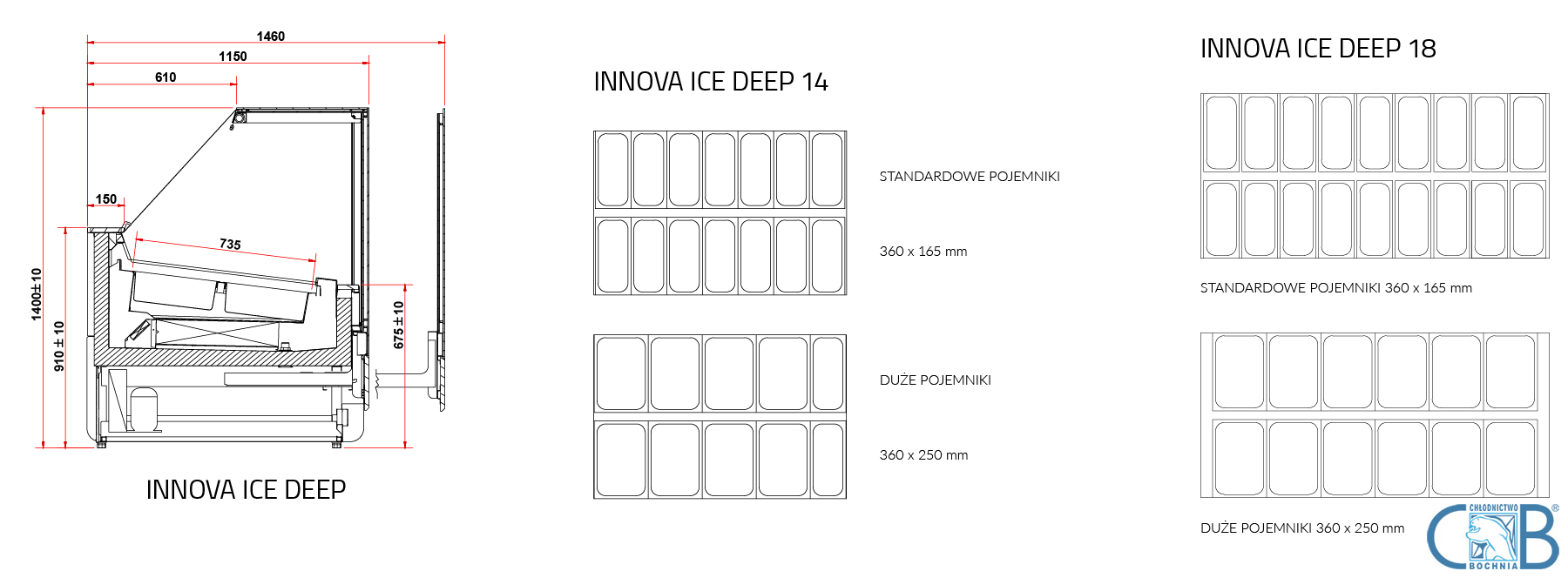 Dystrybutor do lodów w stylistycznej linii INNOVA. Charakteryzuje się m.in. innowacyjnym systemem wysuwanego frontu z elektromagnetyczną blokadą, co znacznie ułatwia czyszczenie urządzenia.Stylistycznie INNOVA ICE jest bardzo uniwersalna, i należy do linii, która znalazła się wśród finalistów Konkursu Dobry Wzór 2016, organizowanego przez Instytut Wzornictwa Przemysłowego. INNOWA ICE wyposażony jest w wewnętrzny agregat chłodniczy, który zapewnia dynamiczne chłodzenie produktów.