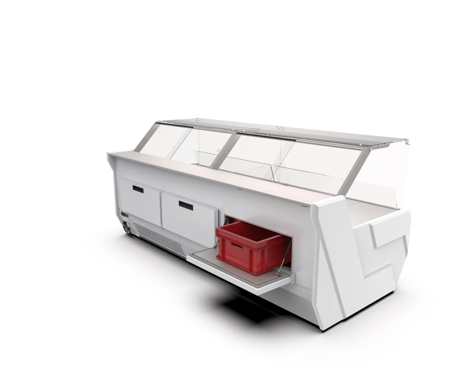 - półka szklana na całej długości w części ekspozycyjnej