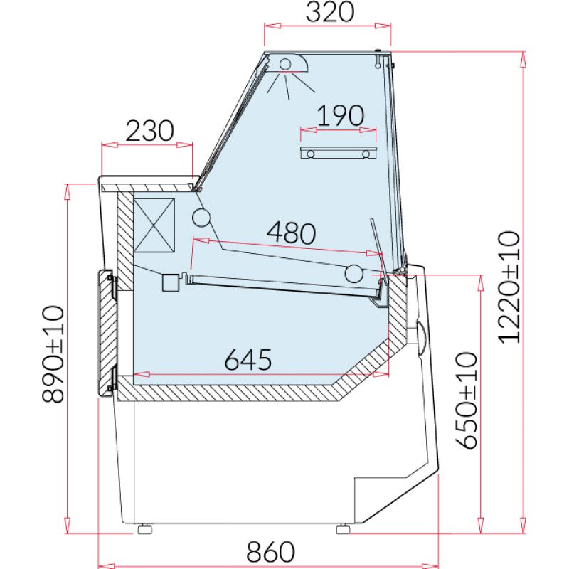 • lampa ze świetlówką LED (barwa do wyboru: biała, cukiernicza lub mięsna „deep pink”)