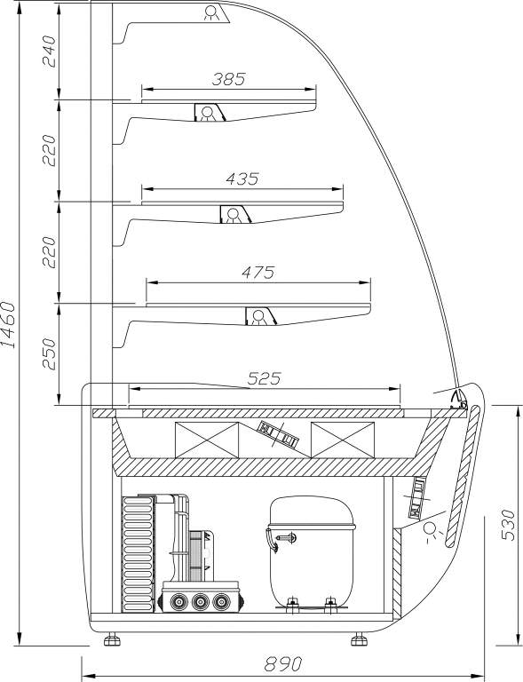 - 3 rzędy podświetlonych półek: szklanych (CH, NE) lub ze stali nierdzewnej (GR)