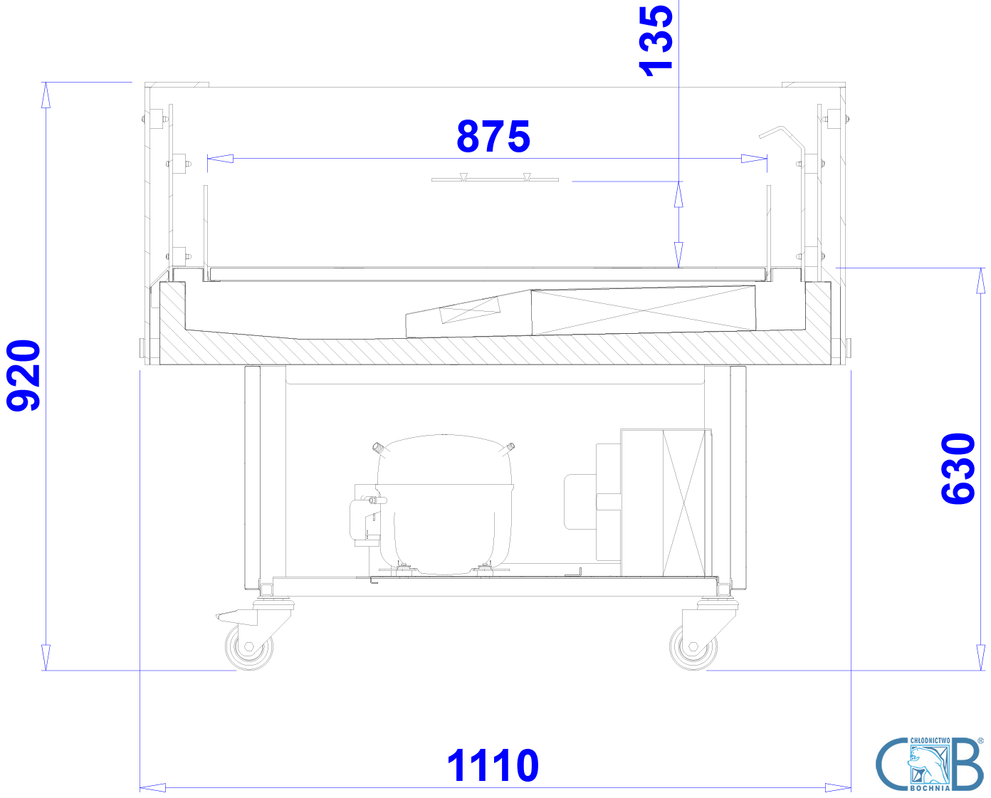 | wnętrze i półki ekspozycyjne z blachy nierdzewnej | |