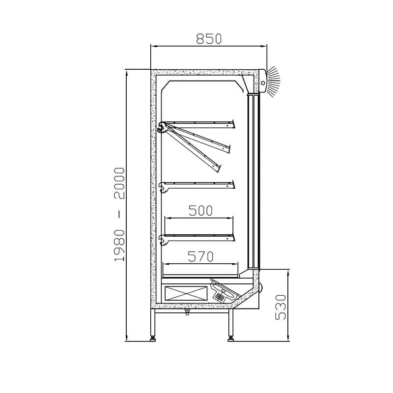 - wnętrze i półki regału z blachy nierdzewnej