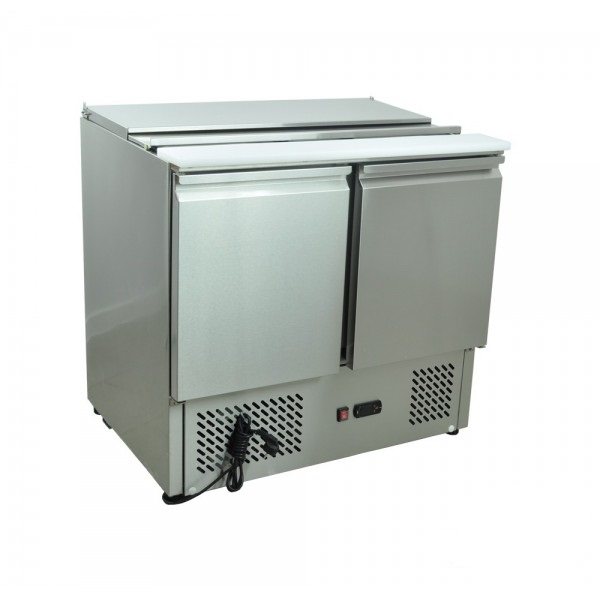 Stół chłodniczy 2-drzwiowy sałatkowy ESL3800 z agregatem na dole wykonany z wysokogatunkowej stali nierdzewnej. Urządzenie doskonale nadaje się do różnego rodzaju punktów gastronomicznych tj. restauracje, pizzerie, bary, fast-food’y, puby itp. Pojemniki GN widoczne na zdjęciu do kupienia osobno.