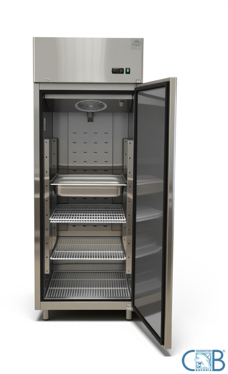 Gastronomiczna szafa chłodnicza MBF o pojemności 700 litrów z agregatem umieszczonym u góry przystosowana do pojemników gastronomicznych GN 2/1. Wyposażona jest w chłodzenie nawiewowe (wymuszone wentylatorem) oraz automatyczne odszranianie i odparowywanie skroplin. Obudowa oraz wnętrze szafy wykonane są ze stali nierdzewnej.