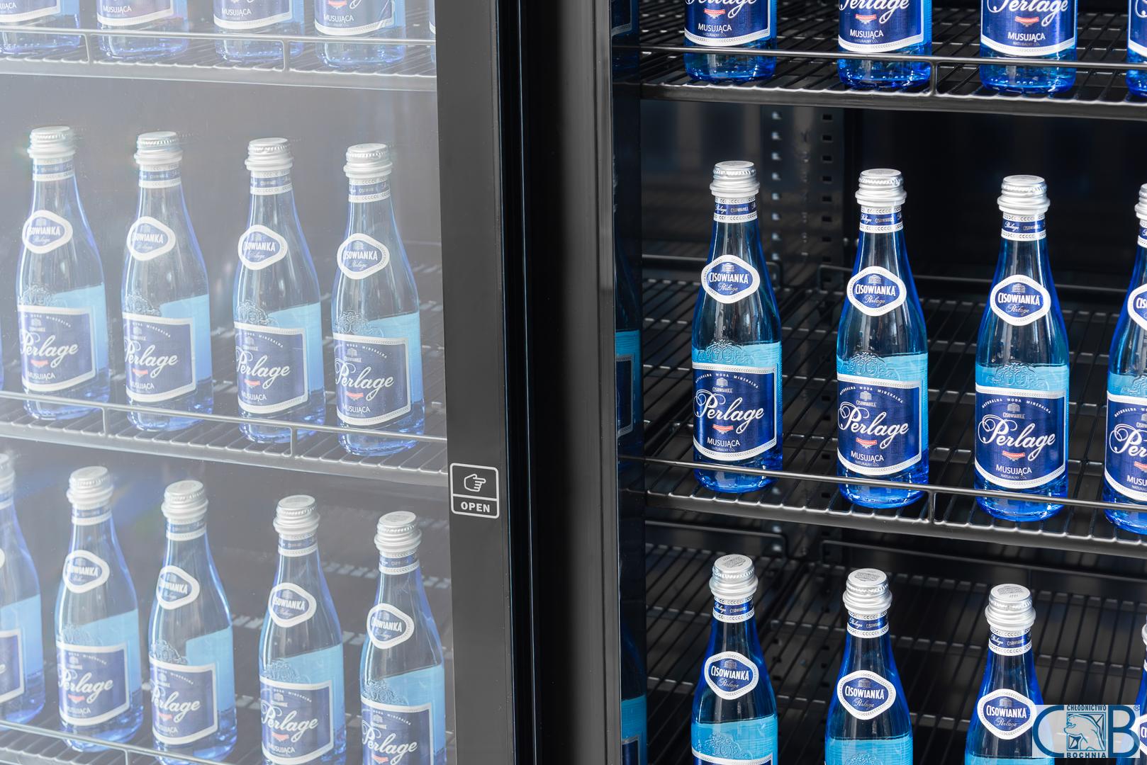 - Innowacyjne oświetlenie LED zamontowane po prawej stronie drzwi oferuje funkcję zmiany barwy z białej na niebieską, co pozwala na błyskawiczne dopasowanie nastroju ekspozycji do wnętrza lokalu