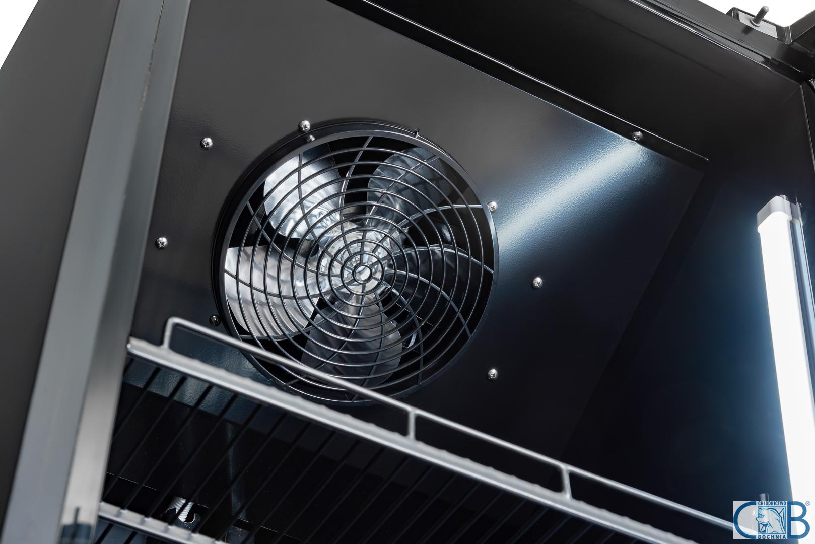 - System chłodzenia dynamicznego gwarantuje stałą temperaturę wewnątrz szafy, co pozwala na zachowanie maksymalnej świeżości produktów niezależnie od ich rozmieszczenia na półkach