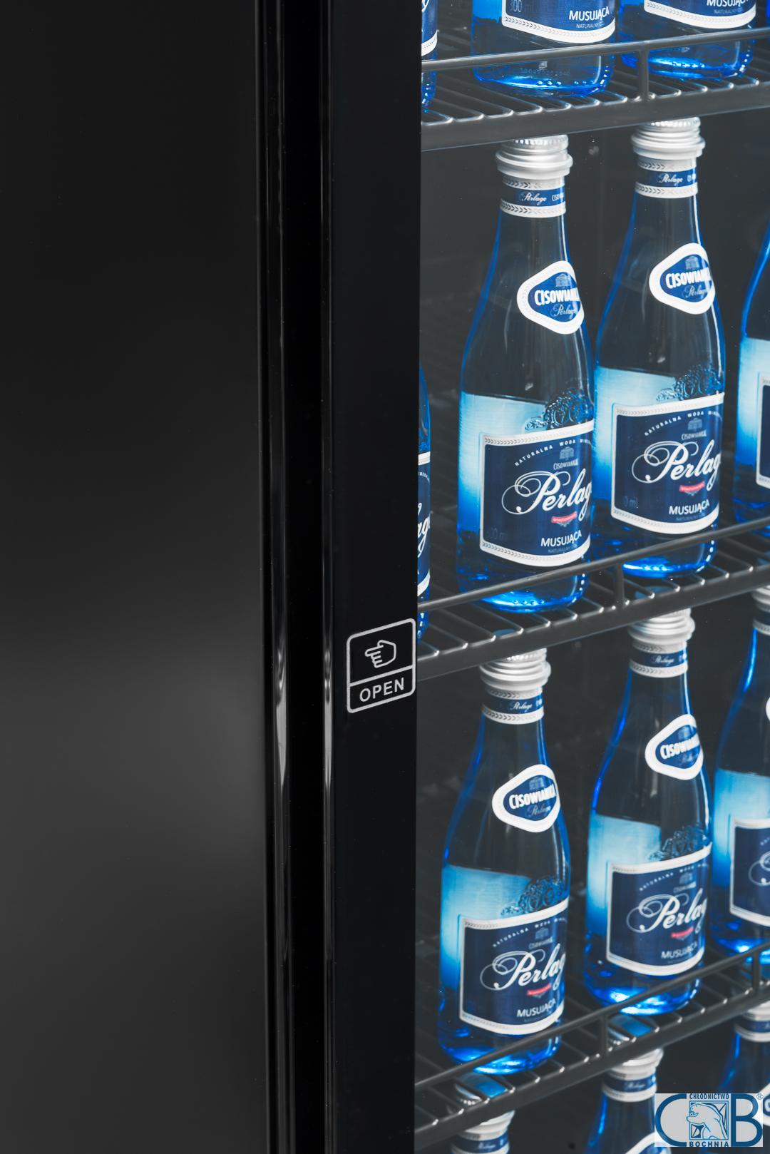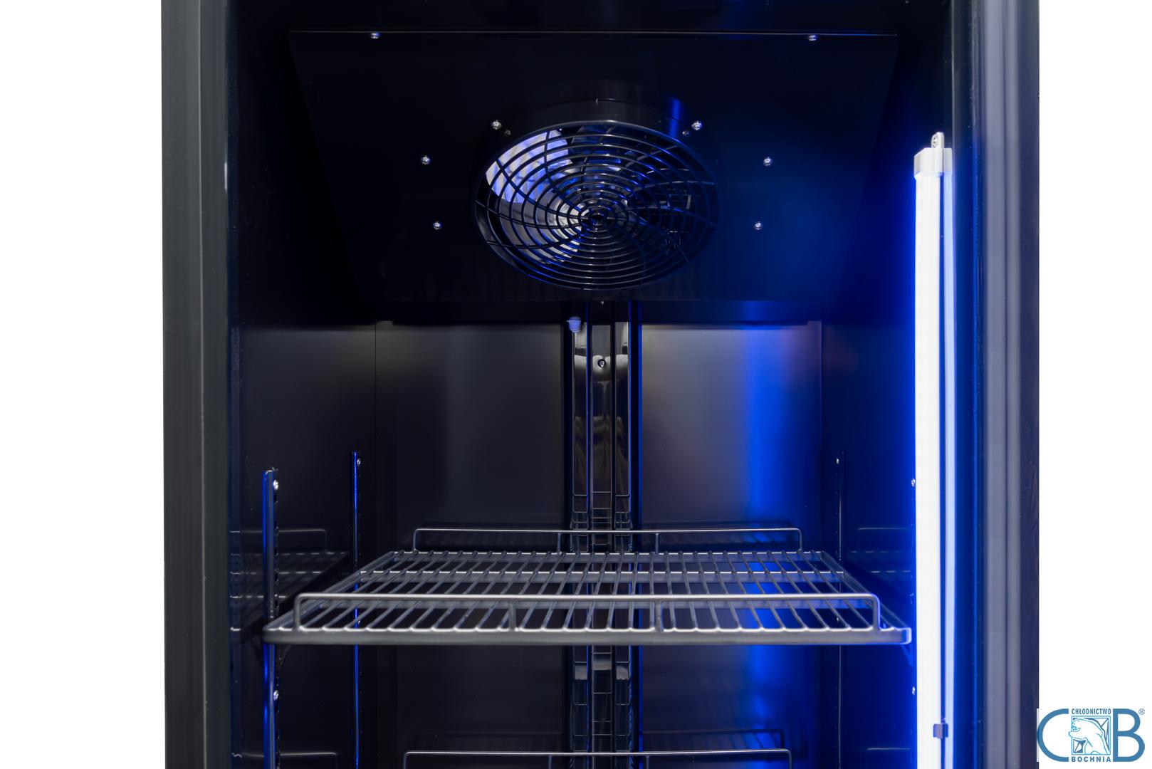 - Innowacyjne oświetlenie LED zamontowane po prawej stronie drzwi oferuje funkcję zmiany barwy z białej na niebieską, co pozwala na błyskawiczne dopasowanie nastroju ekspozycji do wnętrza lokalu