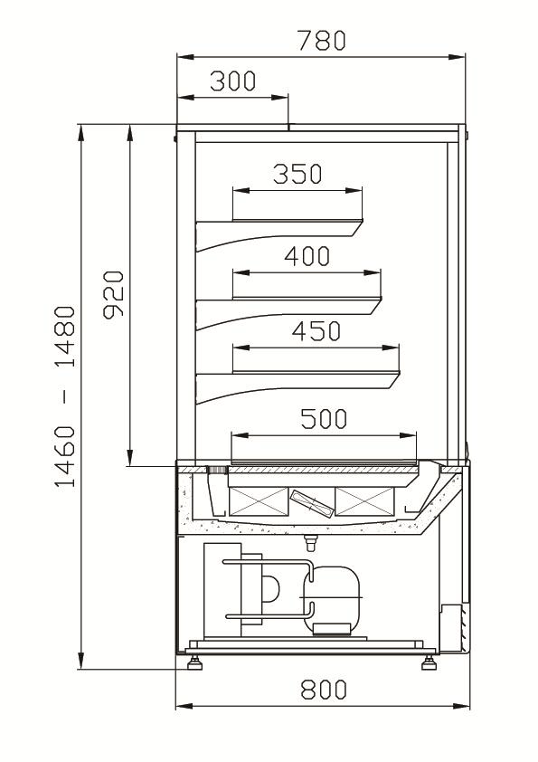 – ledowe podświetlenie zapewniające bardzo dobrą prezentację ciast i oszczędność energii