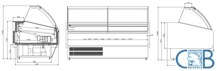 Witryna chłodnicza FIONA LIFT 258 cm – szyba przednia gięta podnoszona na siłownikach