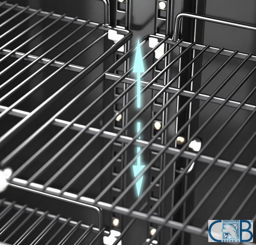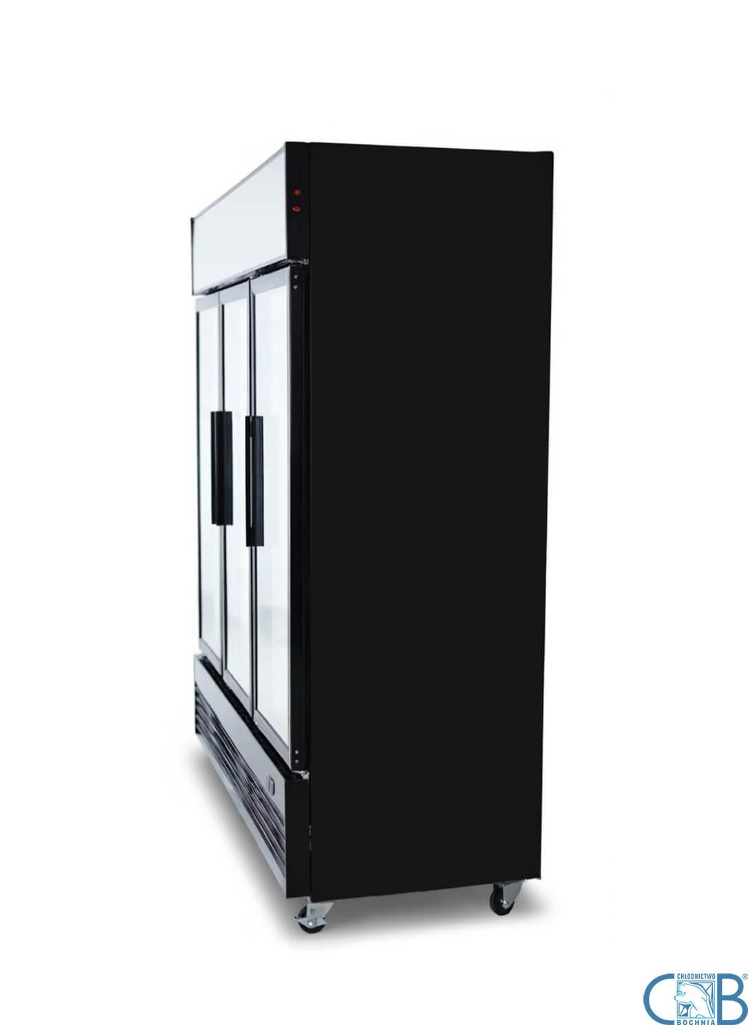 Przeszklona szafa/witryna chłodnicza z drzwiami otwieranymi o pojemności użytkowej 1300 litrów z obudową metalową malowaną proszkowo na kolor czarny. Drzwi otwierane z szybą zespoloną posiadające ramę i uchwyt wykonane z wytrzymałego tworzywa PCV w kolorze czarnym. Urządzenie wyposażone jest w chłodzenie nawiewowe (wymuszone wentylatorem). Urządzenie doskonale nadaje się do różnego rodzaju punktów gastronomicznych tj. sklepy, bary, pizzerie, kawiarnie, fast-food’y, puby itp.