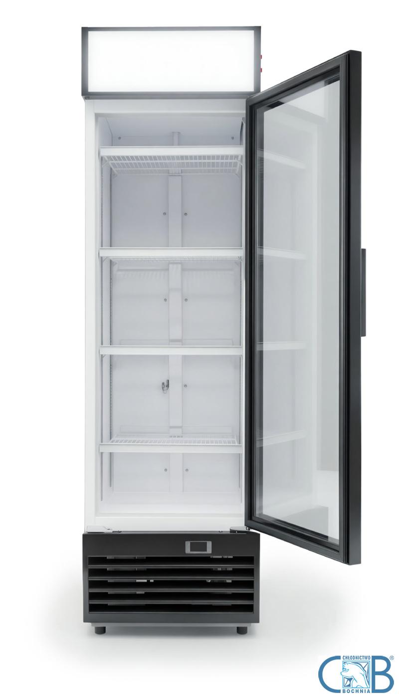 - przeszklone drzwi otwierane zapewniające doskonałą widoczność produktów