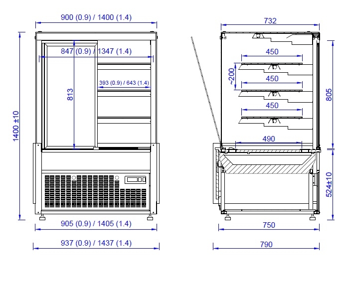 937 / 790 / 1 400 mm