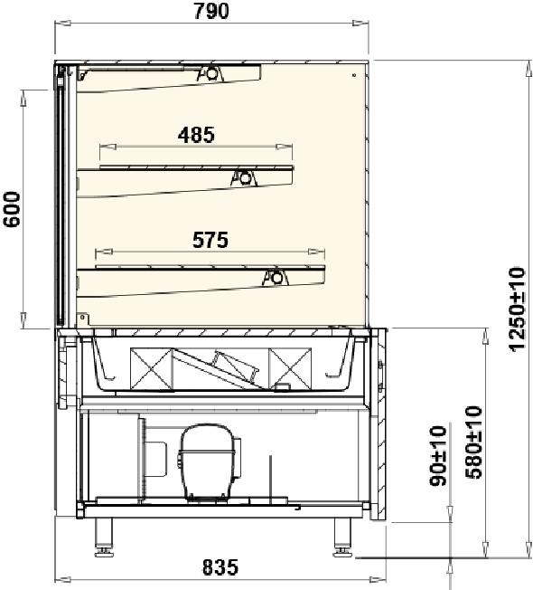 | oświetlenie każdej półki-świetlówka LED (cukiernicza) |