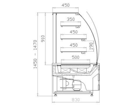 – ledowe podświetlenie zapewniające bardzo dobrą prezentację ciast i oszczędność energii