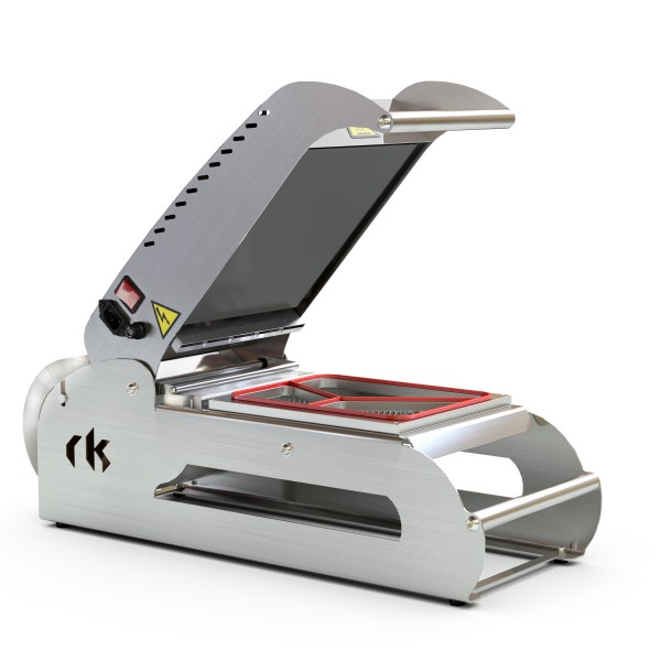 Profesjonalna gastronomiczna zgrzewarka do tacek cateringowych.